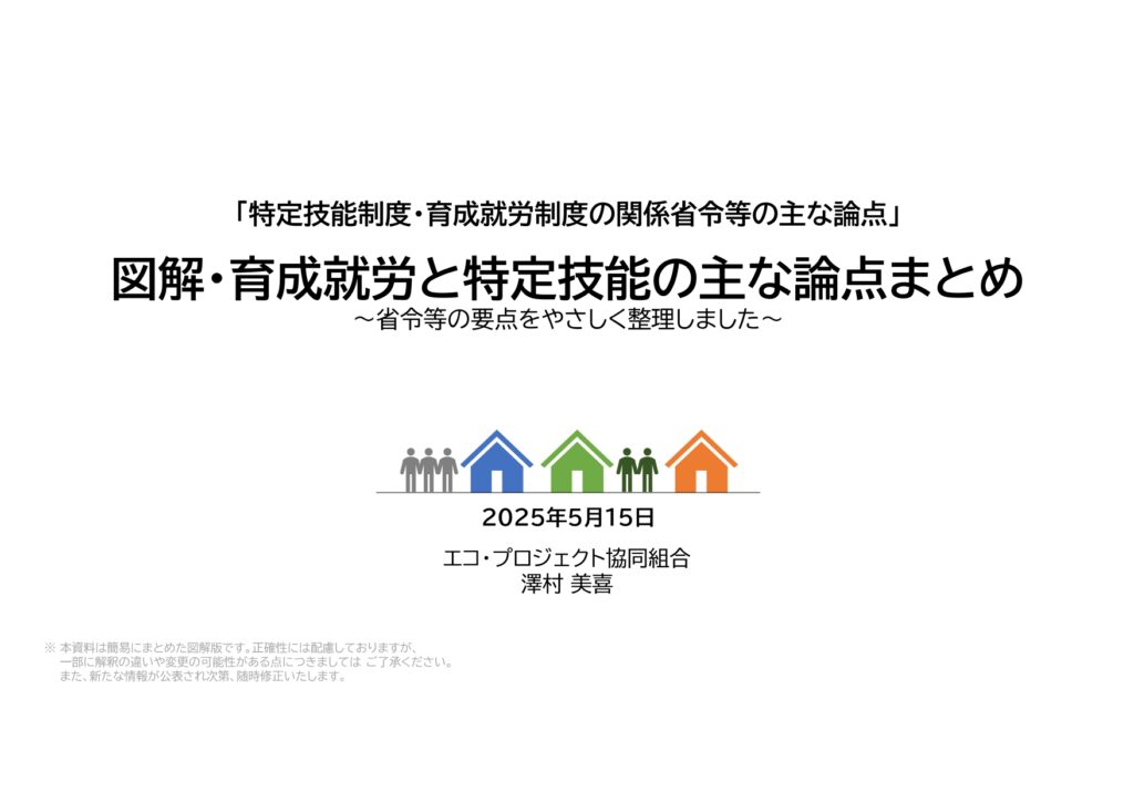 詳細につきましては、当組合が独自に作成した「図解・育成就労と特定技能の主な論点まとめ」をご覧ください。印刷・保存に便利なPDF版、または以下の図からご確認いただけます。