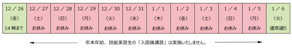 事務所は、2025年12月27日(土)から2026年1月5日(月)まで、お休みをいただきます。 また、誠に勝手ながら、12月26日(金)は、14時に業務を終了いたします。